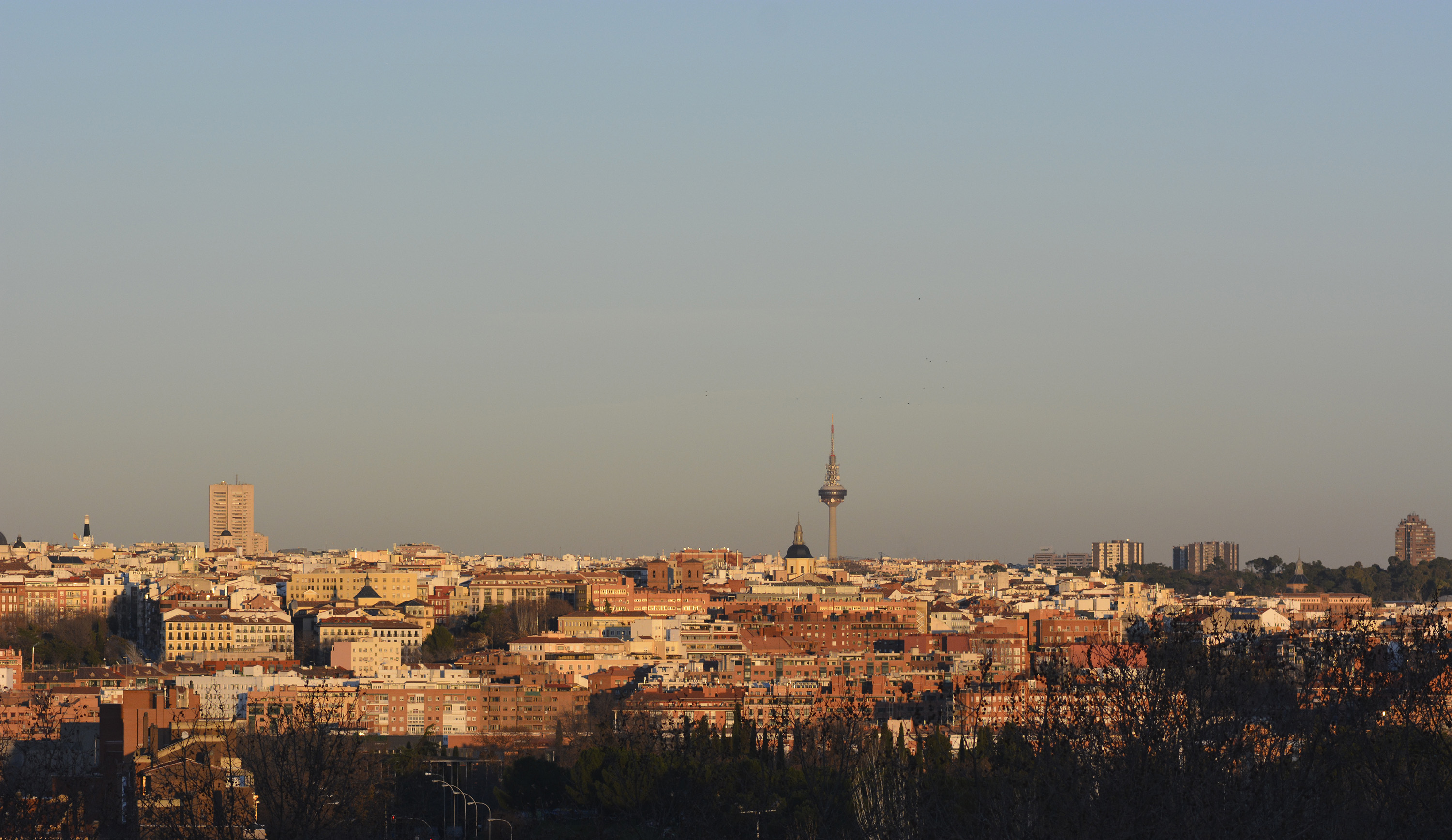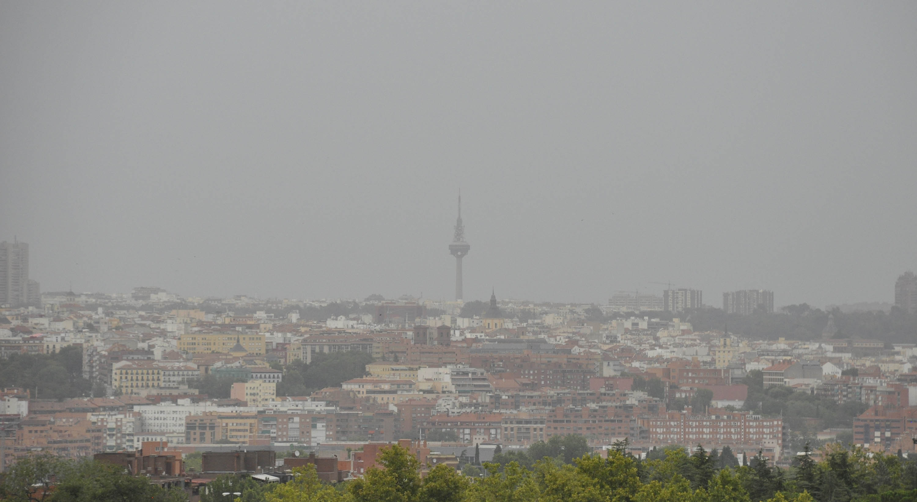 Así estaba ayer por la tarde, cerca de la puesta de sol, el aire de la ciudad.