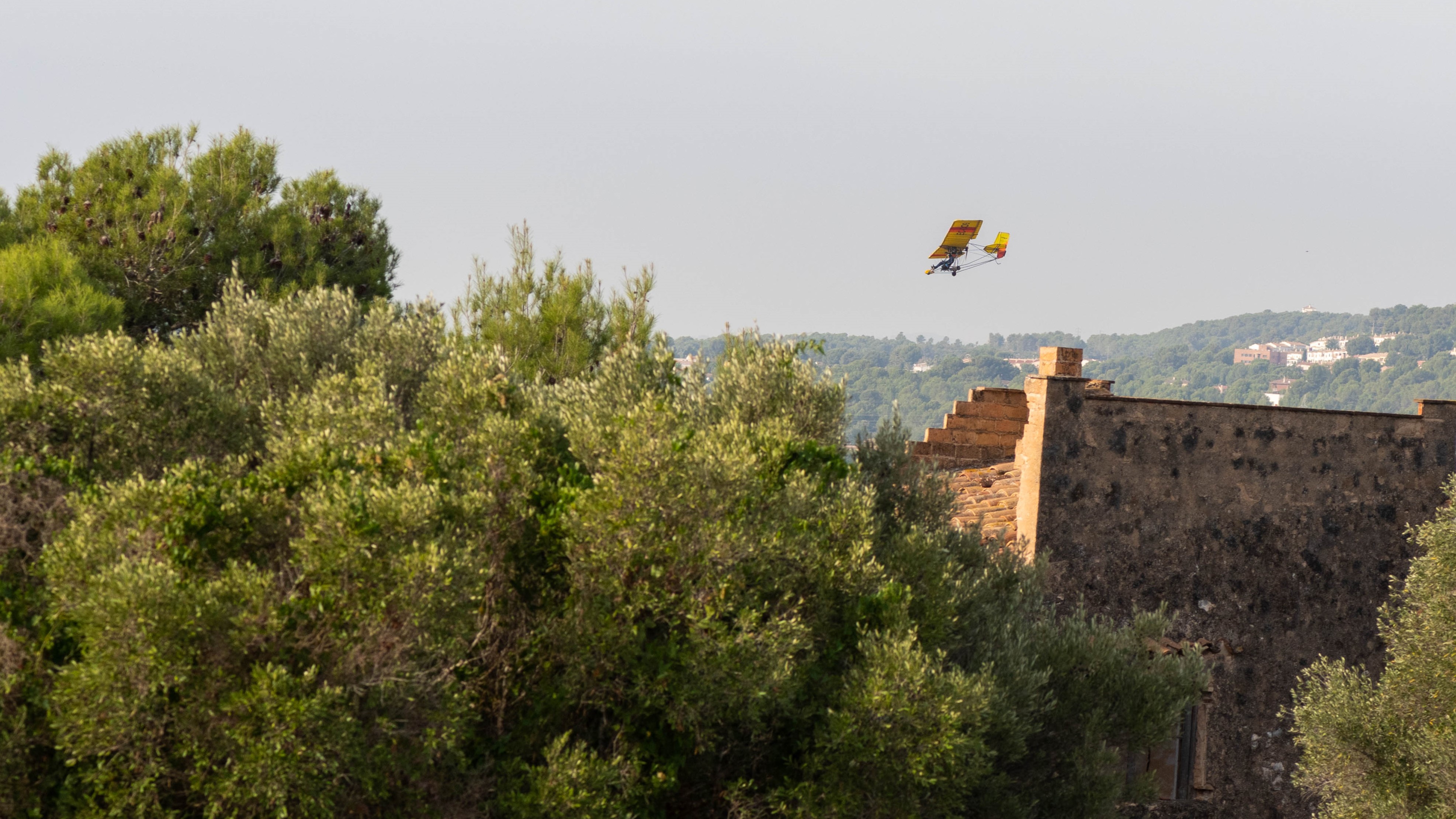 Terminando ya el paseo por el monte esta mañana, ha querido este señor pasar en vuelo rasante relativamente cerca de nuestra posición y el contraste de colores, que su nave provocaba respecto al entorno por el que estaba a punto de pasar, me ha animado a sacar unas tomas de su singladura.